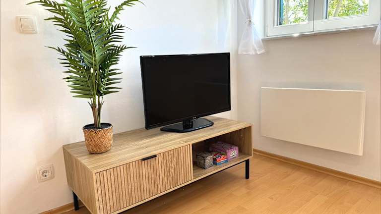 Die Ferienwohnung umfasst ein Schlafzimmer, eine Küche ausgestattet mit Kühlschrank und Ofen, ein Badezimmer mit Dusche sowie einen Sitzbereich. Ein Flachbild-TV ist ebenfalls vorhanden. Handtücher und Bettwäsche werden bereitgestellt. Die Unterkunft ist für Haustiere erlaubt und es stehen Parkiermöglichkeiten zur Verfügung.