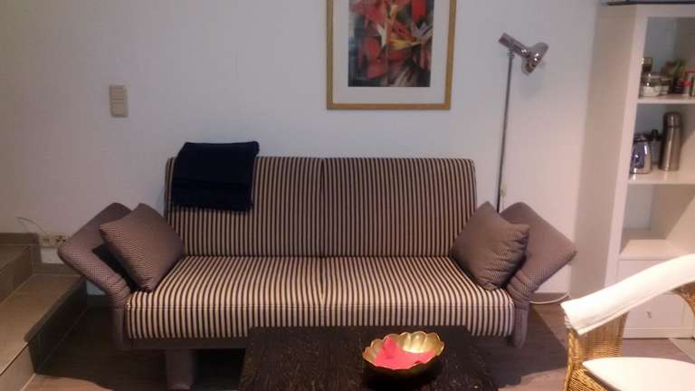 Die Ferienwohnung bietet ein Schlafzimmer, ein Wohnzimmer, einen Flachbild-TV sowie eine gut ausgestattete Küchenzeile mit Kühlschrank und Mikrowelle. Das Badezimmer ist mit einer Dusche ausgestattet. Handtücher und Bettwäsche werden bereitgestellt.