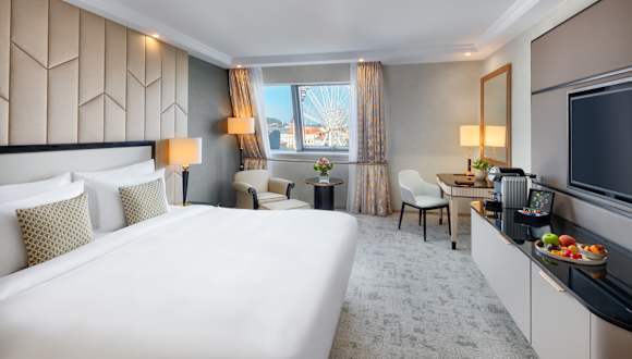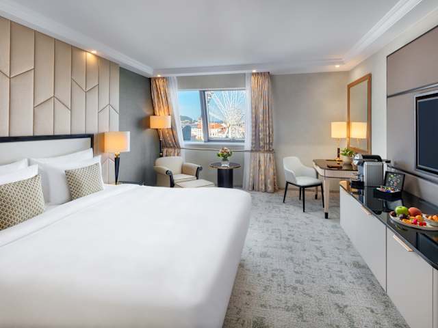 Als das erste zeitgenössische Luxushotel in Ungarn entwickelt sich das Kempinski Corvinus kontinuierlich weiter und definiert das Budapester Reiseerlebnis stets aufs Neue. Das zweckgebaute Hotel im Herzen der Hauptstadt bietet wohl die geräumigsten Hotelzimmer der Stadt in einem designträchtigen Umfeld, das die Ruhe des Erzsébet Parks vor dem Haupteingang mit dem Flair der Fashion Street hinterm Haus verbindet. Die wichtigsten Sehenswürdigkeiten sind von hier leicht zu erreichen und das „Budapest Eye“, das bekannte Riesenrad, befindet sich gleich gegenüber der Hotelauffahrt. Die nächstgelegenen Sehenswürdigkeiten: • Europas größte Synagoge und Basilika (Hauptkathedrale) • die Kettenbrücke und der Donaukai • Luxusboutiquen und das Opernhaus auf dem Andrássy Boulevard • die Budaer Burg, Matthiaskirche, Fischerbastei • der Heldenplatz, Stadtpark, Zoo und Zirkus • das Parlament • die Große Markthalle und die Hold Street Markthalle
