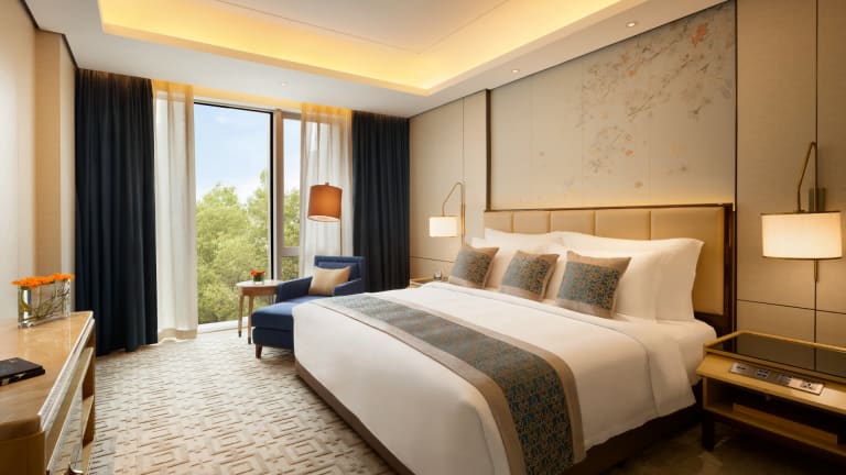 Die Zimmer und Suiten sind geschmackvoll eingerichtet und verfügen über einen Teeset sowie eine Kaffeemaschine. In einigen Zimmern erwarten die Gäste eine Sitzecke zur Entspannung. Bestimmte Einheiten bieten einen Blick auf den speziell gestalteten Aussenhochzeitsgarten. Für Gäste der Executive Zimmer oder Suiten werden spezielle Vorteile angeboten, darunter Frühstück, Nachmittags-Tee und Butler-Service.
