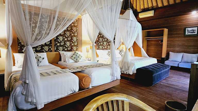 Die Zimmer im Hotel Kencana Garden sind einfach eingerichtet, aber bieten dennoch alle modernen Annehmlichkeiten, die Sie für einen angenehmen Aufenthalt benötigen. Jedes Zimmer ist klimatisiert und verfügt über einen Flachbild-TV, einen Kühlschrank, eine Minibar sowie einen Kleiderschrank. Das Parkett verleiht den Zimmern eine warme Atmosphäre und die Terrasse lädt zum Entspannen ein. Das eigene Bad ist mit einer Dusche ausgestattet und Handtücher werden Ihnen zur Verfügung gestellt.