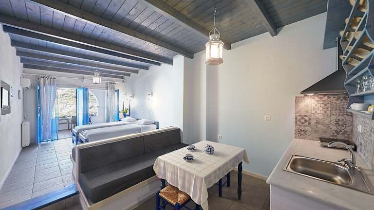 Das Hotel bietet 45 Zimmer, darunter Studios und Apartments mit Meerblick. Alle Zimmer sind voll ausgestattet mit einer Küche, Klimaanlage, TV und WLAN. Die Zimmer bieten Ihnen den Komfort, den Sie für einen angenehmen Aufenthalt benötigen.