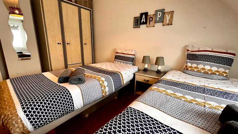 Die Maisonnette bietet zwei Schlafzimmer sowie eine Küche, die mit einem Kühlschrank und einem Ofen ausgestattet ist. Das Badezimmer ist mit einer Badewanne, einem Haartrockner und einer Waschmaschine ausgestattet. Handtücher und Bettwäsche werden bereitgestellt, um den Gästen einen angenehmen Aufenthalt zu ermöglichen.