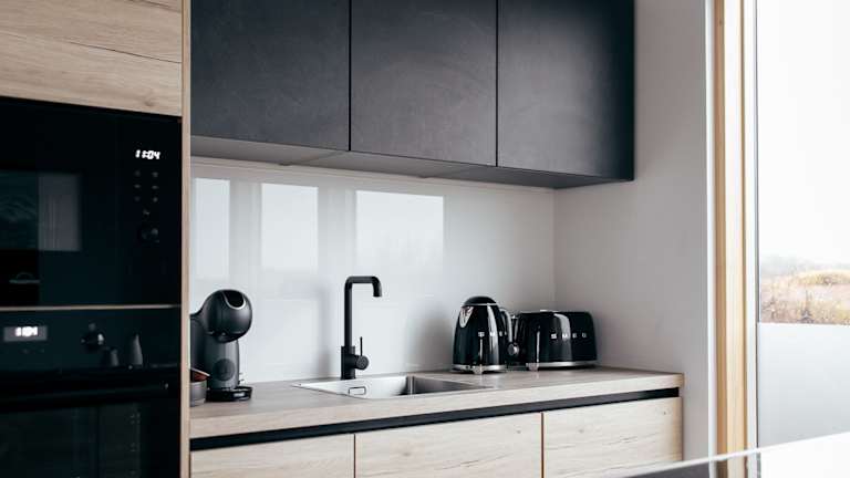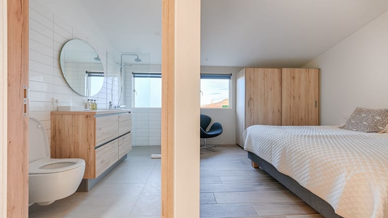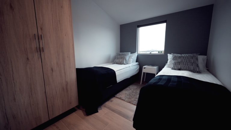 Die Häuser im Kerbyggð sind ausgestattet mit einem TV, einer Waschmaschine sowie einem Wäschetrockner. Jedes Haus bietet ein gemütliches Wohnzimmer, einen Essbereich sowie ein oder zwei eigene Badezimmer mit Dusche und kostenlosen Pflegeprodukten. Die Ausstattung gewährleistet eine perfekte Bequemlichkeit für einen entspannten Aufenthalt.