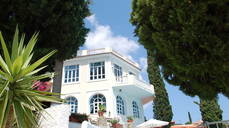 Traditionell im Stil erbaut, erwartet die Gäste eine idyllische Hotelanlage, die sich harmonisch in die Landschaft einfügt. Die sechs Gebäude des Hotels verteilen sich wie in einem Amphitheater inmitten einer wunderschönen Gartenanlage mit Zypressen, Olivenbäumen und Bougainvillea-Kletterpflanzen. Die geräumigen und hellen Zimmer sind modern ausgestattet und bieten Balkon mit Garten- oder Meerblick.