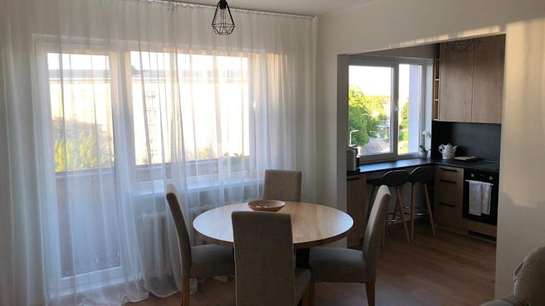 Das Kesklinna Apartement bietet eine helle Ferienwohnung mit Meerblick. Es verfügt über einen Balkon mit Stadtblick und eine komfortable Einrichtung. Die Unterkunft ist ideal für Familien und bietet eine Nichtraucherumgebung sowie Parkiermöglichkeiten.