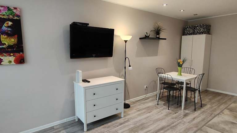 Die Ferienwohnung umfasst 1 Schlafzimmer, ein Wohnzimmer mit Flachbild-TV und Satellitenkanälen, eine voll ausgestattete Küche mit Kühlschrank und Herdplatte sowie ein Badezimmer mit Haartrockner. Handtücher und Bettwäsche werden bereitgestellt.