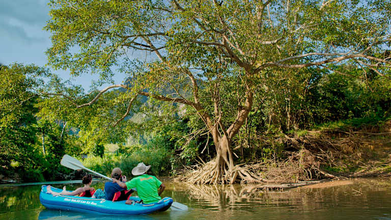 Die Khao Sok Riverside Lodge befindet sich inmitten der Natur, umgeben von der faszinierenden Tierwelt, und liegt direkt am Ufer eines ruhigen Flusses.