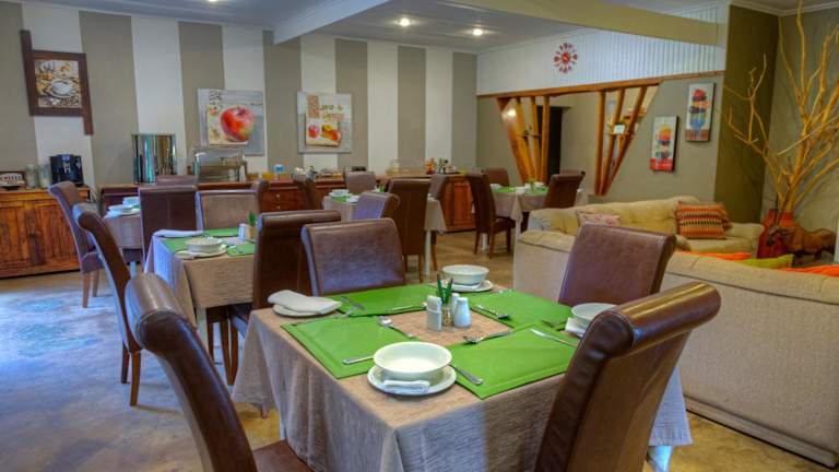 Das Frühstück wird täglich in Form eines Buffets angeboten und beinhaltet sowohl kontinentale als auch englische/irische Optionen. Im hauseigenen Restaurant werden afrikanische Spezialitäten serviert, und auf Anfrage stehen auch vegetarische, milchfreie und halal-zubereitete Gerichte zur Verfügung.