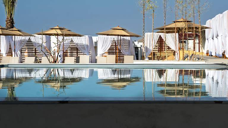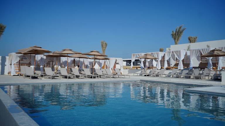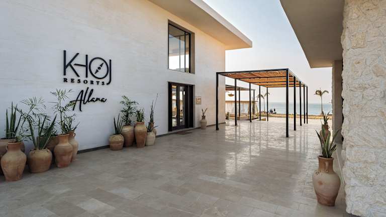 Khoj Resorts Allana bietet einen Aussenpool, einen eigenen Strandbereich, eine Gemeinschaftslounge und ein Restaurant.