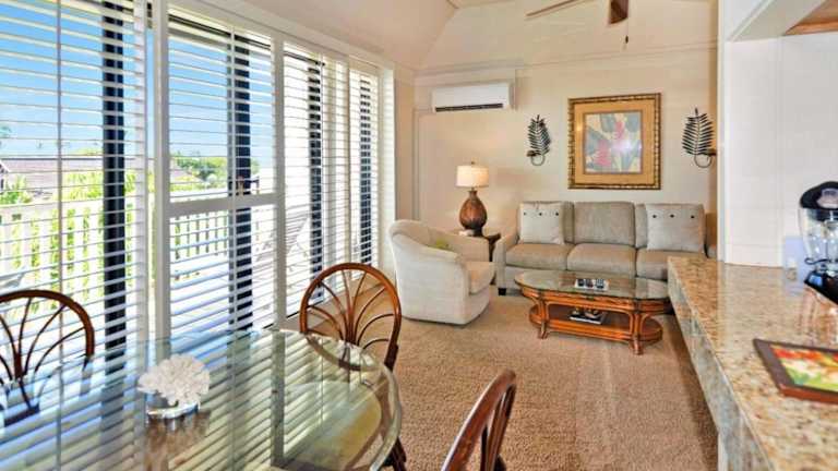 Kiahuna Plantation Unit 118 - 2nd Floor Expansive Views, Air Conditioning bietet eine umfangreiche Ausstattung, darunter einen schönen Gartenblick, einen Aussenpool, einen Whirlpool sowie eine einladende Terrasse. Die Unterkunft ist ideal für Familien und bietet komfortable, klimatisierte Wohneinheiten.