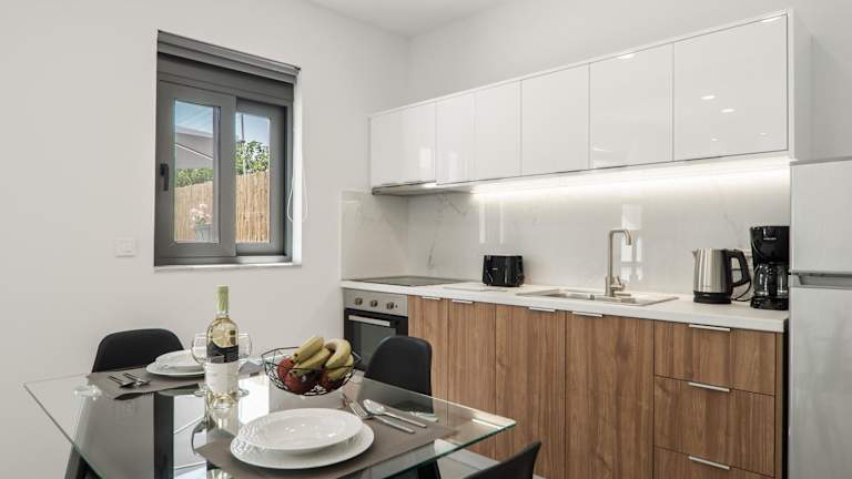 Die Zimmer der Kiani Apts sind mit einer voll ausgestatteten Küche ausgestattet, die einen Kühlschrank, einen Ofen, eine Herdplatte, einen Toaster, eine Kaffeemaschine und einen Wasserkocher umfasst. Jedes Zimmer verfügt über ein eigenes Badezimmer, das mit einer Dusche und einem Haartrockner ausgestattet ist. Die Zimmer sind schallisoliert und beinhalten zusätzliche Annehmlichkeiten wie einen Safe und Heizung.