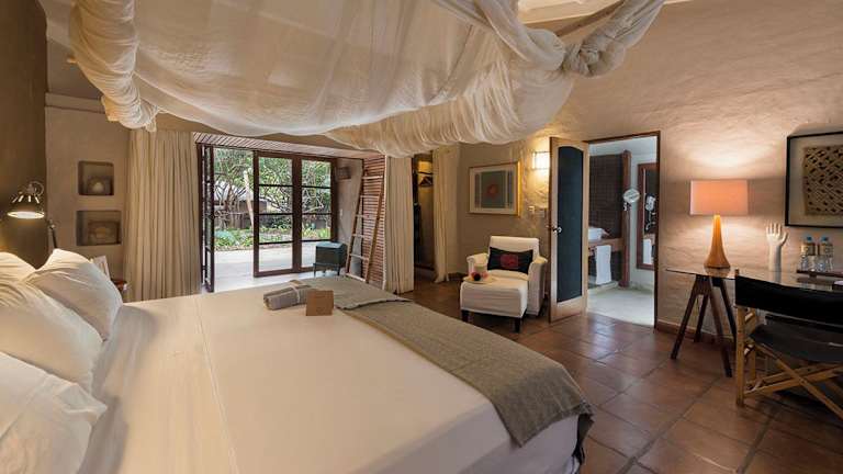 Die klimatisierten Zimmer verfügen über eine Terrasse sowie einen Sitzbereich. Jedes Zimmer ist mit einem eigenen Bad ausgestattet, das eine Dusche, einen Haartrockner und kostenfreie Pflegeprodukte umfasst. Zur Ausstattung gehören ein Schreibtisch und ein Safe, wobei einige Zimmer einen schönen Blick auf das Meer oder den Garten bieten.