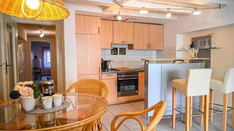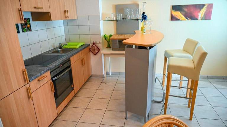 Die Ferienwohnung verfügt über 1 Schlafzimmer, ein Wohnzimmer, einen Flachbild-TV sowie eine gut ausgestattete Küchenzeile mit Kühlschrank und Ofen. Zudem steht ein Badezimmer mit einer Dusche zur Verfügung. Handtücher und Bettwäsche werden bereitgestellt.
