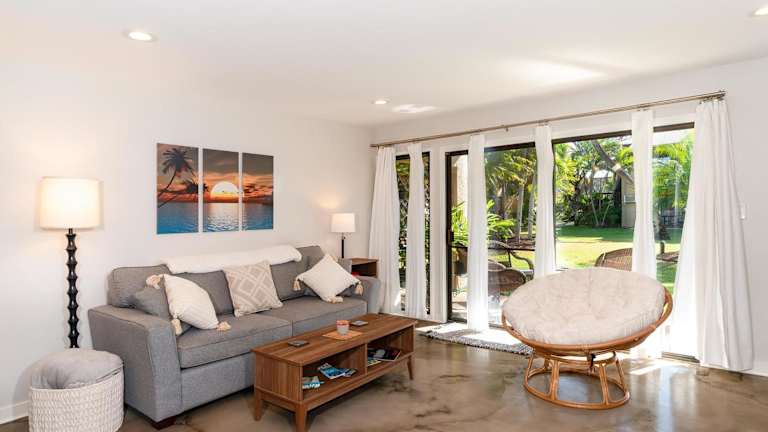 Kihei Garden Estates B-103 - Modern Designer Condo verfügt über einen Whirlpool und klimatisierte Wohneinheiten mit kostenlosem Wifi. Die Unterkunft ist modern gestaltet und bietet eine einladende Atmosphäre.