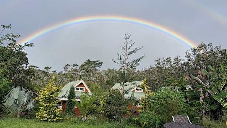 Die Wohneinheiten der Kikala Waterfall Lodge verfügen über einen Balkon mit Gartenblick, was eine angenehme Atmosphäre für die Gäste schafft.