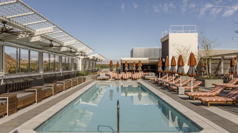 Das Kimpton Rowan Palm Springs Hotel in Palm Springs ist ein luxuriöses Hotel, das mit seinem ganzjährig geöffneten Außenpool, der Sonnenterrasse und dem atemberaubenden Bergblick beeindruckt. Die Zimmer sind stilvoll eingerichtet und verfügen über ein eigenes Bad mit luxuriösen Pflegeprodukten. Das Hotel bietet auch Annehmlichkeiten wie eine 24-Stunden-Rezeption, kostenlose Fahrradverleih und ein Fitnesscenter. Die zentrale Lage des Hotels ermöglicht es den Gästen, die Sehenswürdigkeiten von Palm Springs bequem zu erkunden.