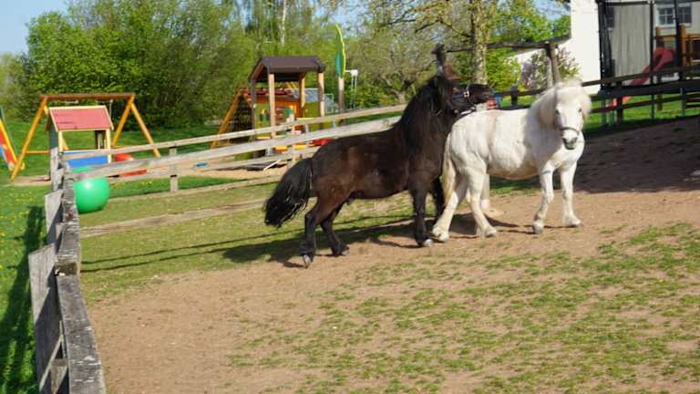 Glückliche Kinder Unser Kinder-Ferienhof beeindruckt Sie durch seinen riesengroßen Spielplatz. Auf 22.000 qm können Ihre Kinder jeden Tag neue Abenteuer erleben. Egal ob im Baumhaus, im Klettergarten oder beim Bobby-Carrennen auf unserer hofeigenen Spielstrasse, Ihre Kinder werden jede Menge Spaß haben und schnell neue Freunde finden. Und falls das Wetter mal nicht mitspielt, steht Ihnen unsere Indoor-Familienerlebniswelt auf über 140 qm zur Verfügung. Mit einem riesigen Bällebad für die Kleinsten, einem Spielhaus für spannende Abenteuer, einer Boulderwand, einer quietschgelben Röhrenrutsche u.v.m. bieten wir Spielspass von 0-99 Jahren. Lassen Sie sich auch faszinieren von unserer „Erlebniswelt Bauernhof“. Freuen Sie sich auf den Kontakt mit unseren Ponys Princess und Benni, den Alpakas Rosi und Emil und den Meerschweinchen. Unsere Hühner liefern Ihnen täglich die frischen Frühstückseier. Unser Kater Burli ist der „Chef“ im Stall und lässt sich gerne von Ihren Kindern streicheln. Wir bieten zum Beispiel zweimal pro Woche geführtes Ponyreiten, so wie gemeinsames Füttern unserer Tiere an. Der Altmühlsee ist nur 4,5 km und der Brombachsee ist 11 km von uns entfernt. Unser Tipp: Unternehmen Sie einen Ausflug in den Playmobil-Funpark in Zirndorf (lediglich 40 Minuten Fahrzeit). Wir bieten Ihnen je nach Saison vergünstigte Eintrittskarten.