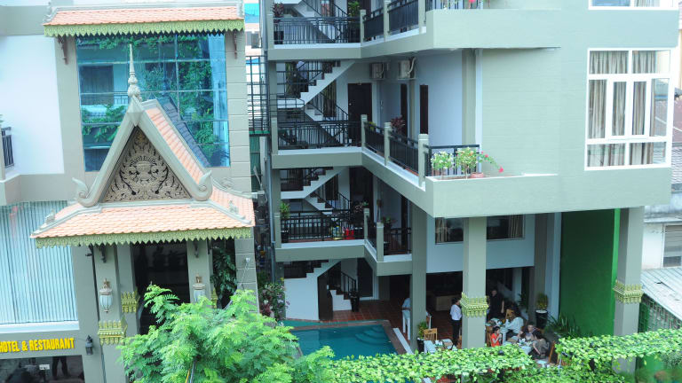 Das Hotel befindet sich in der Nähe der wichtigsten Touristenattraktionen und ist zu Fuss ca. 5 Minuten vom Königspalast sowie dem Nationalmuseum entfernt. Das Stadtzentrum ist in etwa 500 m erreichbar, während der internationale Flughafen Phnom Penh nach ca. 8 km erreicht wird.