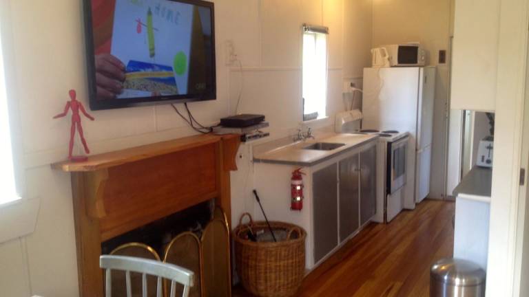 Das Ferienhaus beinhaltet 3 separate Schlafzimmer sowie eine vollständige Küche, die über einen Kühlschrank und einen Ofen verfügt. Ein Essbereich ist ebenfalls vorhanden.