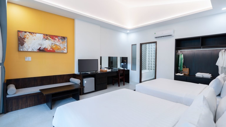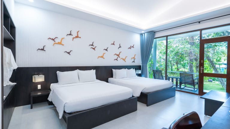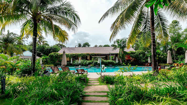 Die Unterkunft Kingo Retreat Resort liegt in Phú Quốc, nur 300 m vom Strand Ông Lang entfernt. Die Umgebung bietet eine ruhige Atmosphäre mit der Nähe zu lokalen Sehenswürdigkeiten wie der Sung-Hung-Pagode, die 9,1 km entfernt ist, und Vinpearl Land Phú Quốc, das 14 km entfernt liegt. Der nächstgelegene Flughafen, der Flughafen Phu Quoc, befindet sich in einer Distanz von 15 km.