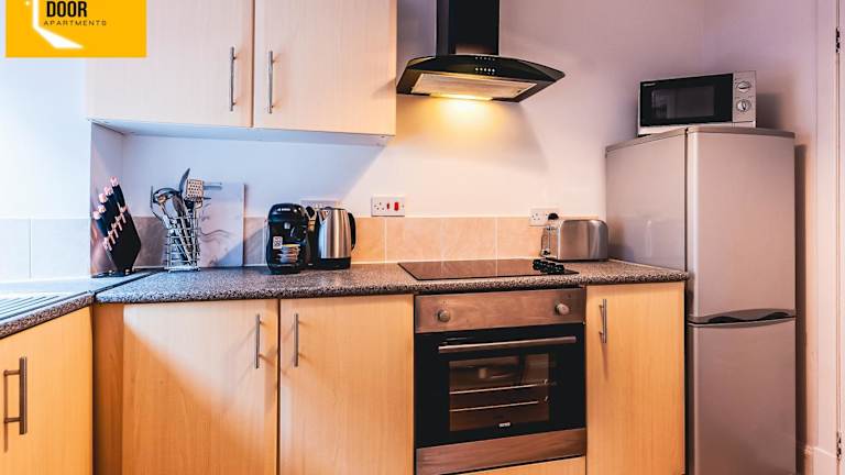 Die Unterkunft bietet ein Schlafzimmer, ein Wohnzimmer, eine voll ausgestattete Küche mit Kühlschrank und Kaffeemaschine sowie ein Badezimmer mit Dusche und kostenlosen Pflegeprodukten. Handtücher und Bettwäsche werden zur Verfügung gestellt. Allergikerfreundliche Zimmer sind ebenfalls verfügbar.