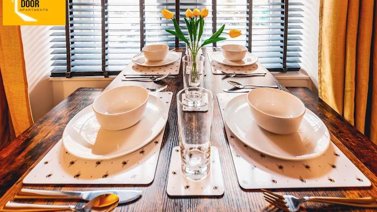 Essen kann auf Wunsch in die Unterkunft geliefert werden (gegen Aufpreis). Es sind auch Einkaufs- und Essmöglichkeiten in der Nähe vorhanden, die den Gästen eine breite Auswahl bieten. Selbstverpflegung ist durch die voll ausgestattete Küche bestens möglich.