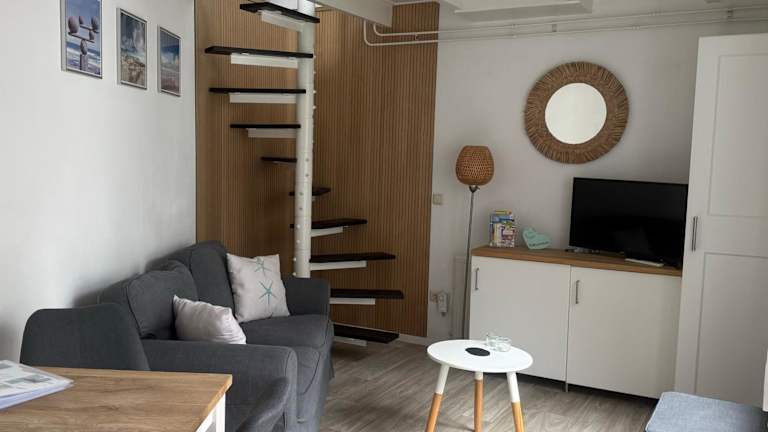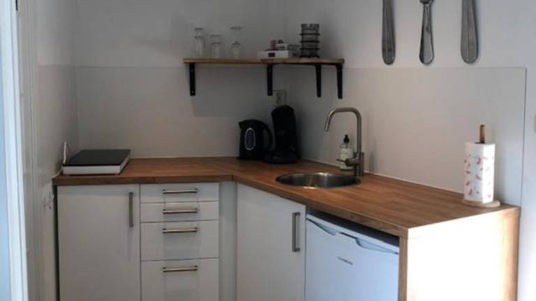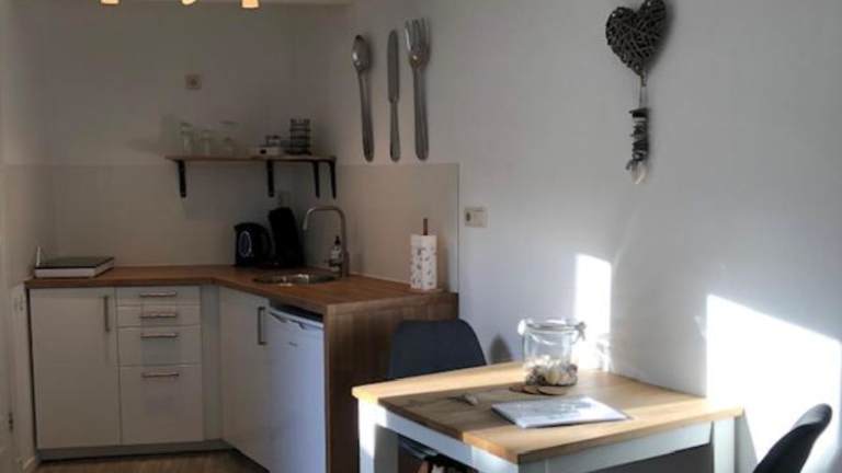 Die Ferienwohnung umfasst ein Schlafzimmer, ein Wohnzimmer und eine voll ausgestattete Küche mit Kühlschrank und Kaffeemaschine. Das Badezimmer ist mit einer Dusche und einem Haartrockner ausgestattet. Handtücher und Bettwäsche werden bereitgestellt.