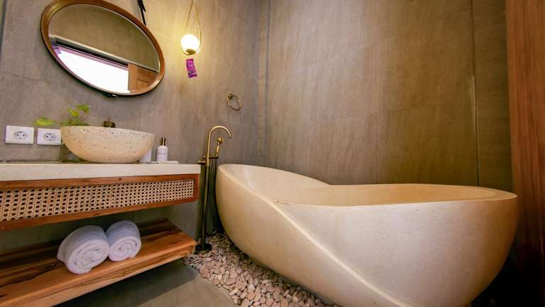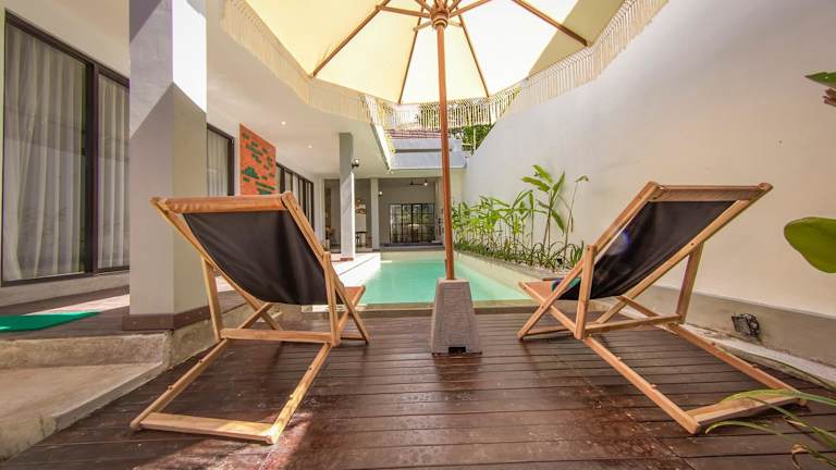 Die Villa ist klimatisiert und umfasst 2 Schlafzimmer sowie 3 Badezimmer, ausgestattet mit einem Whirlpool. Die Küche beinhaltet eine Minibar und sorgt somit für die notwendigen Annehmlichkeiten während des Aufenthaltes. Das kostenlose WLAN steht in allen Bereichen zur Verfügung.