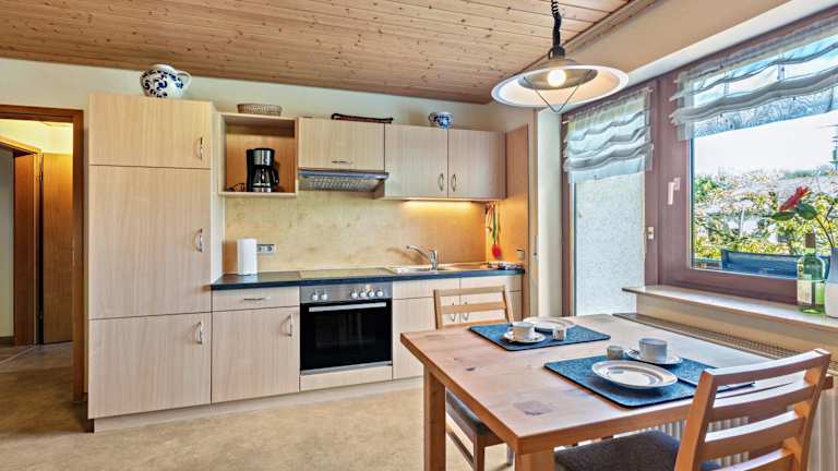 Jede Wohneinheit im Kirschenhof ist ausgestattet mit einem Kühlschrank, einem Ofen, einer Herdplatte, einer Kaffeemaschine und einem Wasserkocher. Satelliten TV ist ebenfalls vorhanden.