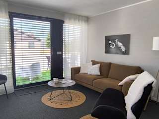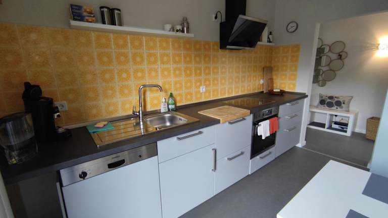 Die Ferienwohnung verfügt über 1 Schlafzimmer, ein Wohnzimmer mit Flachbild-TV, eine gut ausgestattete Küche mit Kühlschrank und Geschirrspüler sowie ein Badezimmer mit Dusche. Zur Ausstattung gehören auch Handtücher und Bettwäsche. Zudem gibt es einen Balkon mit Stadtblick.