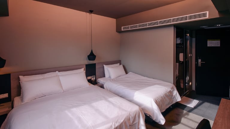 Die schallisolierten Zimmer sind mit Teppichboden und Klimaanlage ausgestattet. Sie bieten Kabel-TV, einen Kleiderschrank, einen Kühlschrank sowie ein eigenes Badezimmer mit Dusche. Kostenlose Toilettenartikel und Hausschuhe sind ebenfalls vorhanden. Aus den Zimmern geniesst man einen Blick auf die Stadt.
