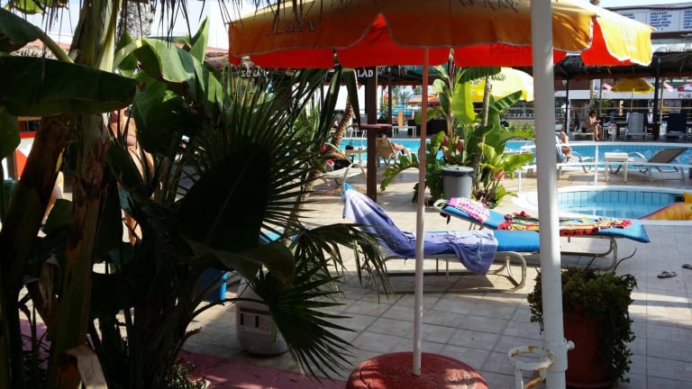 Das Kkaras Hotel befindet sich in Ayia Napa, direkt am Strand, und bietet somit einen unmittelbaren Zugang zu den Strandeinrichtungen wie Sonnenschirmen und Liegen.