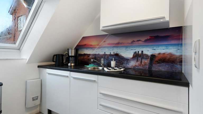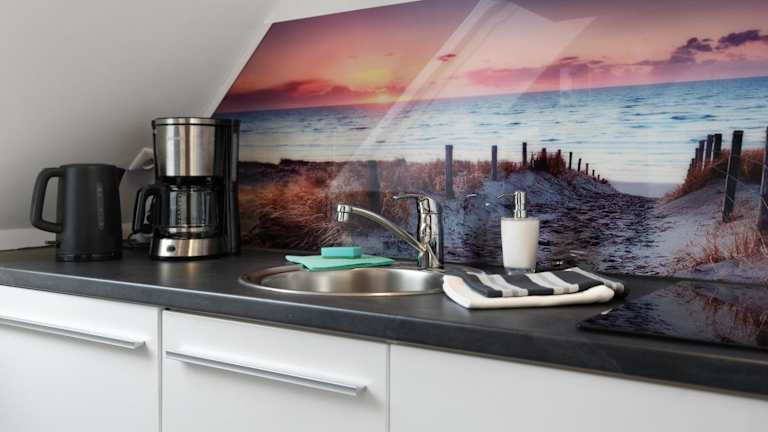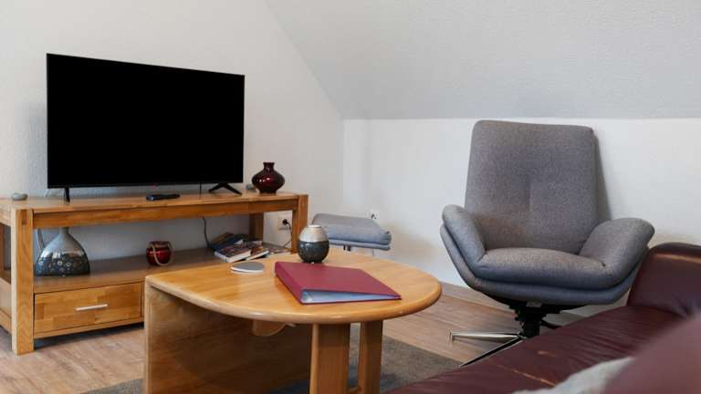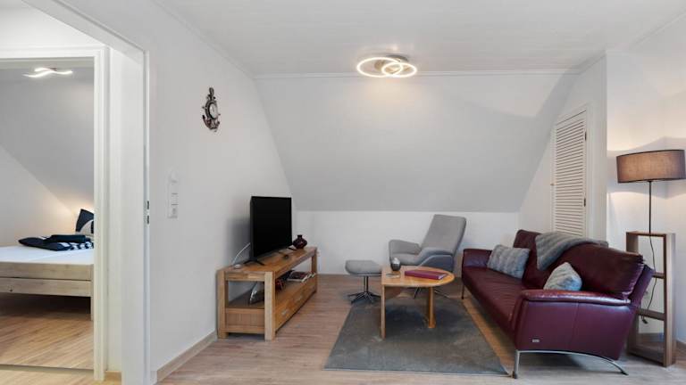 Die Ferienwohnung enthält 1 Schlafzimmer, eine voll ausgestattete Küche mit Kühlschrank und Geschirrspüler sowie 1 Badezimmer mit Dusche. Handtücher und Bettwäsche werden zur Verfügung gestellt. Eine Waschmaschine ist ebenfalls vorhanden.