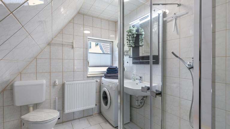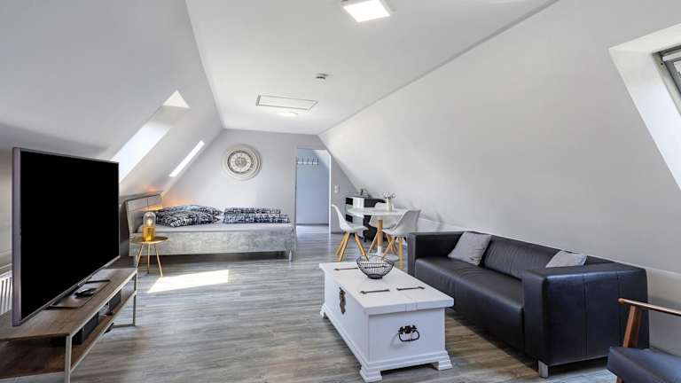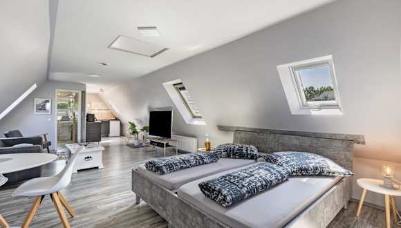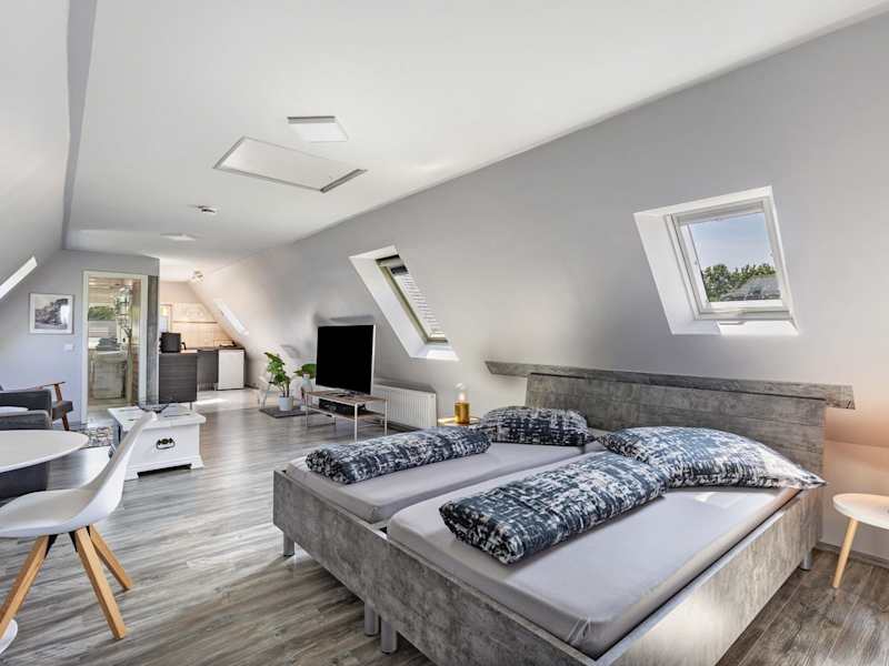 Die Ferienwohnung ist ausgestattet mit einem Schlafzimmer, einer Küche mit Kühlschrank und Geschirrspüler, sowie einem Badezimmer mit Dusche und kostenlosen Pflegeprodukten. Handtücher und Bettwäsche werden zur Verfügung gestellt.