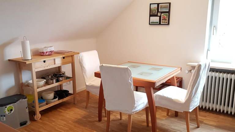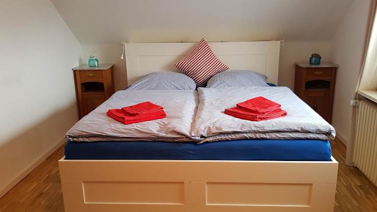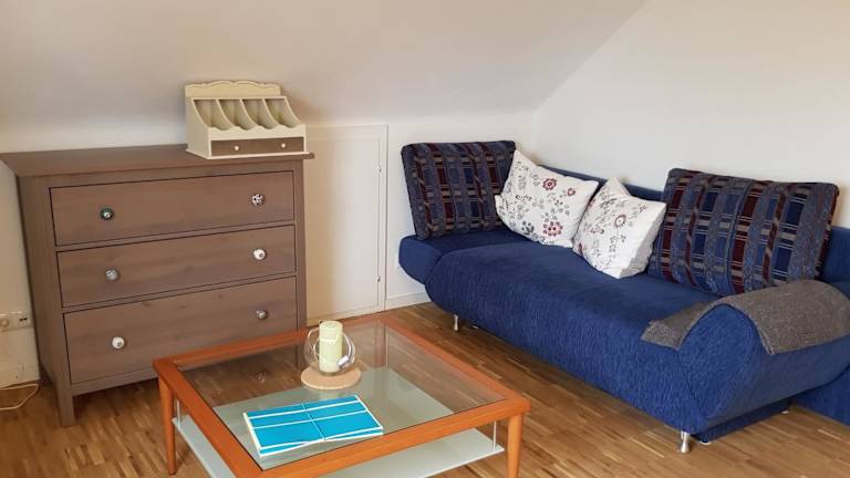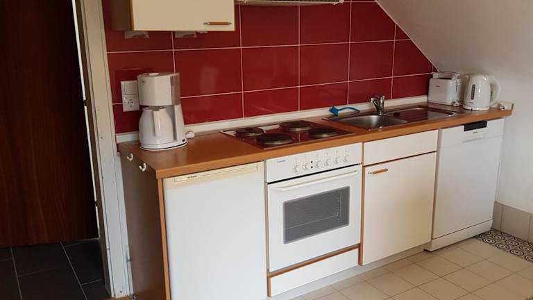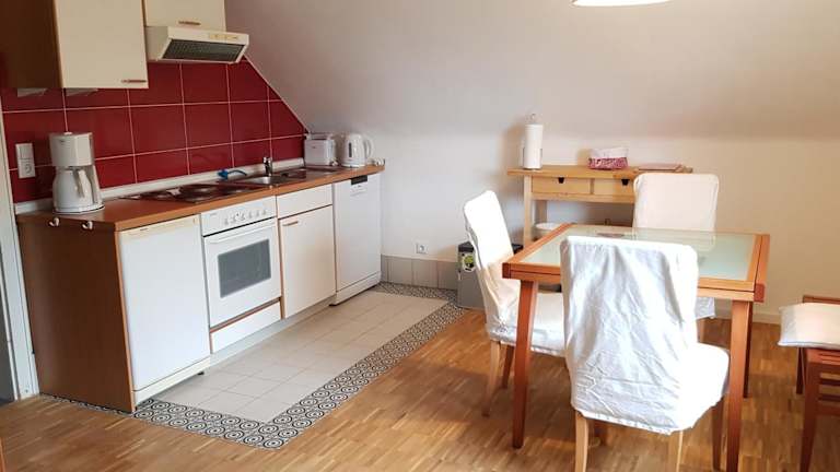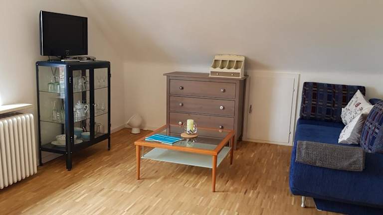 Die Ferienwohnung beinhaltet ein Wohnzimmer mit Satelliten-TV sowie eine voll ausgestattete Küche mit Kühlschrank. Bettwäsche und Handtücher werden nicht bereitgestellt; Gäste können diese selbst mitbringen oder gegen Aufpreis vor Ort mieten.