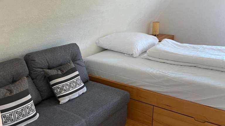 Die Ferienwohnung verfügt über ein Schlafzimmer, einen Flachbild-TV sowie eine voll ausgestattete Küche mit Kühlschrank, Geschirrspüler, Waschmaschine, Ofen und Herdplatte. Handtücher und Bettwäsche werden zur Verfügung gestellt. Es stehen Nichtraucherzimmer und Familienzimmer zur Verfügung.