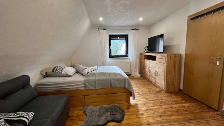 Die Unterkunft Kleine, aber feine Unterkunft mit direktem Waldzugang bietet eine heimelige Atmosphäre mit einem Garten und Gartenblick. Gäste können die gesamte Ferienwohnung nutzen, die ausschliesslich für Übernachtungen gedacht ist. Es sind keine Feierlichkeiten wie Junggesellen-/Junggesellinnenabschiede erlaubt, und die Unterkunft wird von einem privaten Gastgeber geführt.