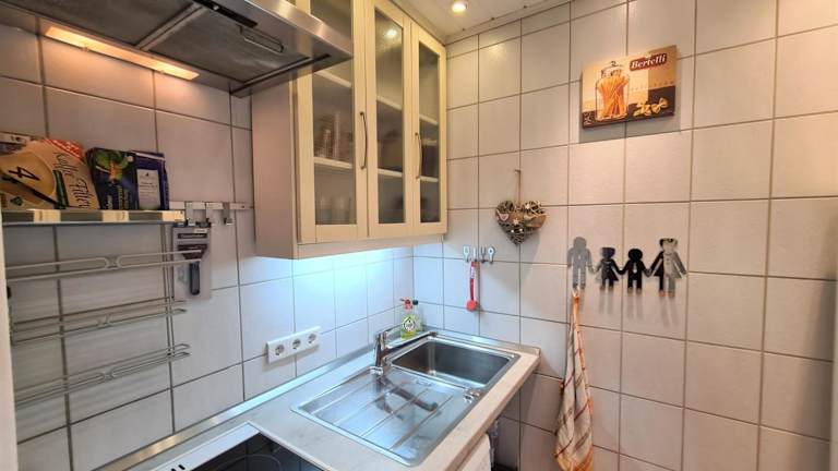 Die Ferienwohnung ist mit einer voll ausgestatteten Küche versehen, die über einen Kühlschrank, einen Geschirrspüler, einen Ofen sowie eine Kaffeemaschine und einen Wasserkocher verfügt. Hier können die Gäste ihre eigenen Mahlzeiten zubereiten.