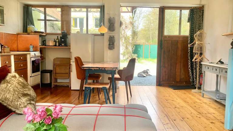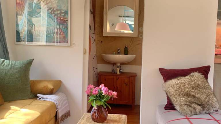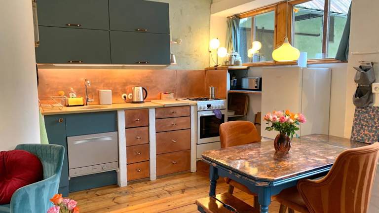 Die Wohnung bietet ein Schlafzimmer sowie ein Badezimmer mit Dusche, Haartrockner und Waschmaschine. Handtücher und Bettwäsche werden zur Verfügung gestellt. Es bestehen zudem Parkiermöglichkeiten und die Unterkunft bietet Gartenmöbel sowie eine Feuerstelle im Freien.
