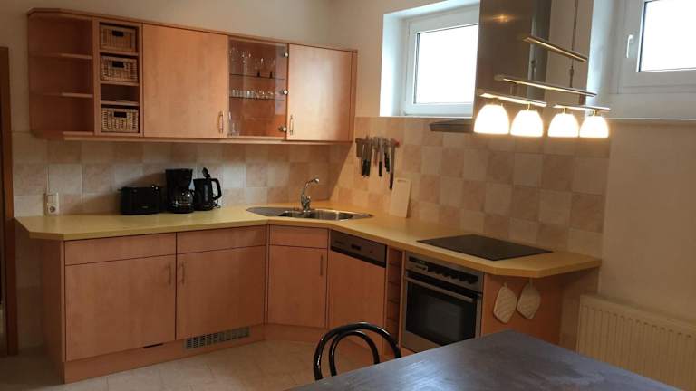 Die Ferienwohnung ist mit einem Wohnzimmer mit TV, einer voll ausgestatteten Küche mit Kühlschrank und Geschirrspüler sowie einem Badezimmer mit Dusche ausgestattet.