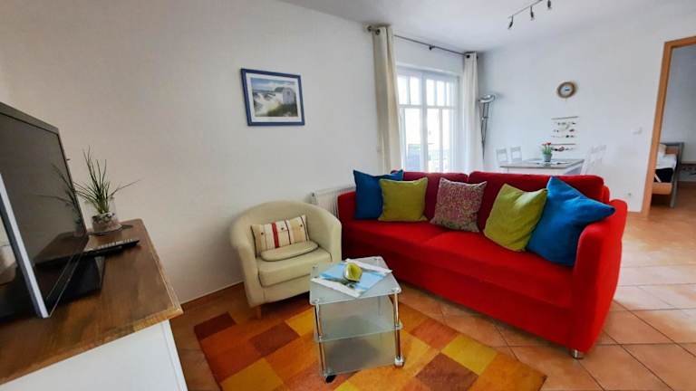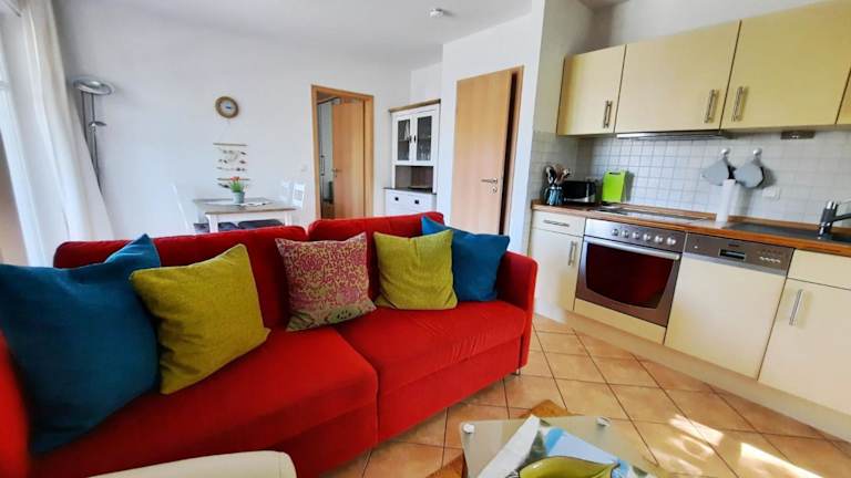 Die Ferienwohnung bietet 1 Schlafzimmer und ist ausgestattet mit einem Flachbild-TV mit Satellitenkanälen. Eine gut ausgestattete Küchenzeile mit Kühlschrank und Geschirrspüler sowie ein Badezimmer mit Dusche sind ebenfalls vorhanden. Zudem steht ein Balkon zur Verfügung.