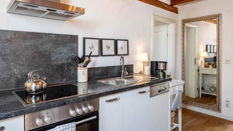 Die Ferienwohnung beinhaltet 1 Schlafzimmer und ein Badezimmer. Eine gut ausgestattete Küche mit Kühlschrank, Geschirrspüler und Ofen sorgt für die nötige Bequemlichkeit. Zudem steht Satelliten TV zur Verfügung.