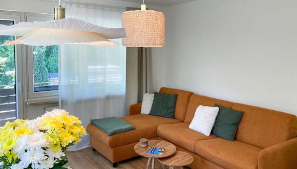 Die Ferienwohnung hat ein Schlafzimmer und ein Wohnzimmer, ausgestattet mit einem Flachbild-TV. Es gibt eine gut ausgestattete Küche mit einem Kühlschrank und einem Geschirrspüler. Das Badezimmer ist mit einer Dusche ausgestattet. Handtücher und Bettwäsche werden bereitgestellt. Zudem verfügt die Wohnung über einen Balkon mit Stadtblick.