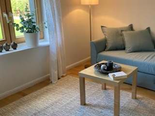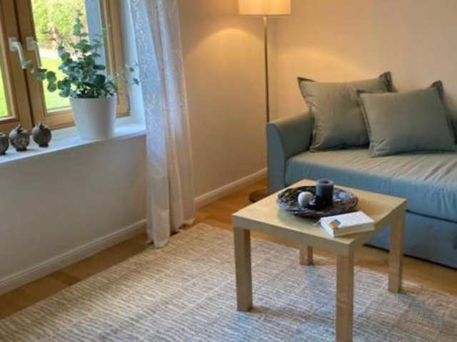 Die Ferienwohnung umfasst 1 Schlafzimmer, ein Wohnzimmer sowie eine voll ausgestattete Küchenzeile mit Kühlschrank und Kaffeemaschine. Des Weiteren verfügt die Wohnung über 1 Badezimmer mit Dusche und Badewanne. Handtücher und Bettwäsche werden zur Verfügung gestellt.