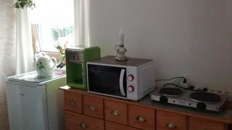Die Zimmer im Kleines Haus im Oderbruch verfügen über einen Sitzbereich, einen Satelliten-Flachbild-TV sowie eine voll ausgestattete Küchenzeile mit Kühlschrank, Mikrowelle und weiteren Annehmlichkeiten wie Herdplatte, Toaster, Kaffeemaschine und Wasserkocher. Zudem ist ein eigenes Badezimmer mit Dusche und kostenlosen Pflegeprodukten vorhanden. Die Gäste können den Gartenblick von der Terrasse geniessen.