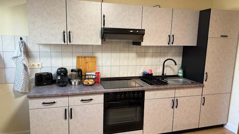 Das Ferienhaus verfügt über ein Schlafzimmer, eine voll ausgestattete Küche mit Kühlschrank und Ofen, einen Flachbild-TV sowie einen separaten Sitzbereich. Darüber hinaus gibt es ein Badezimmer, das mit einer Dusche ausgestattet ist. Handtücher und Bettwäsche werden bereitgestellt. Die Terrasse lädt zum Entspannen im Freien ein.