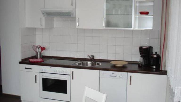 Die Ferienwohnung ist ausgestattet mit zwei Schlafzimmern, einem TV sowie einer voll ausgestatteten Küche. Diese Küche beinhaltet Annehmlichkeiten wie einen Kühlschrank, einen Geschirrspüler, eine Waschmaschine, einen Ofen und eine Herdplatte.