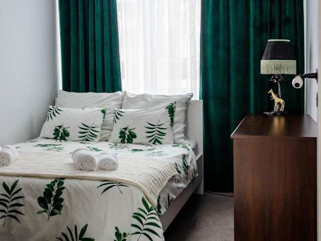 Die Ferienwohnung setzt sich aus einem Schlafzimmer, einem Wohnzimmer und einer voll ausgestatteten Küche zusammen. Die Gäste finden in der Unterkunft eine Badewanne, einen Haartrockner sowie Handtücher und Bettwäsche vor. Alle Bereiche sind Nichtraucherzonen, und die Unterkunft ist auch mit einem Rauchmelder sowie einem Feuerlöscher ausgestattet.
