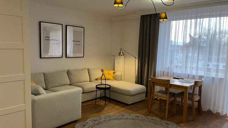 Die Unterkunft Klimatyczne mieszkanie w centrum bietet Übernachtungsmöglichkeiten in einer gemütlichen Ferienwohnung mit einem Balkon und kostenlosem Wifi. Die Ferienwohnung besteht aus einem Schlafzimmer, einem Wohnzimmer sowie einer voll ausgestatteten Küche, die einen Kühlschrank und eine Kaffeemaschine umfasst. Ein Badezimmer mit einer Badewanne und einem Haartrockner ist ebenfalls vorhanden. Handtücher und Bettwäsche werden bereitgestellt.